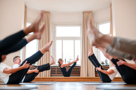 Zusätzlich gibt es einen kleineren Raum, ideal für Einzelbehandlungen auf der Liege oder individuelle Sitzungen. Hier finden Sie zudem unser Equipment – von Matten und Yogablöcken über Hocker bis hin zu diversen Kleingeräten. Eine Musikanlage mit Bluetooth-Anbindung sowie WLAN stehen Ihnen ebenfalls zur Verfügung.